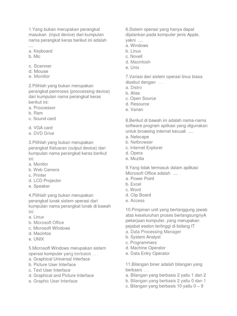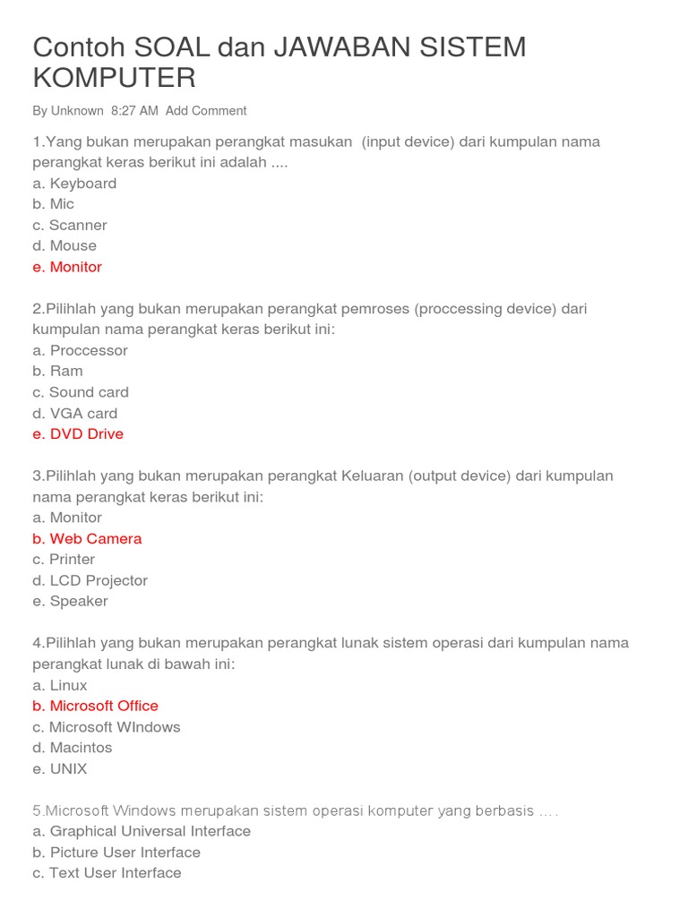 Contoh Soal Sistem Komputer Beserta Jawaban Ilmusosial Id